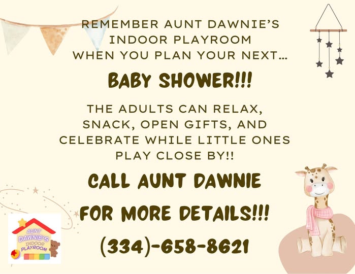 Aunt Dawnie’s is a cozy, colorful indoor playroom designed for kids to explore, imagine, and have fun—rain or shine! Whether it’s a playdate, party, or everyday adventure, Aunt Dawnie’s is where big smiles and little giggles happen every day.